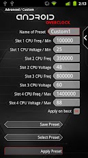 Devices listed below can use an overclocking module to overclock from within the app. Other devices can flash custom kernels to overclock. ( Droid X, Droid 2, Original Droid, Milestone, Milestone2, Flipout, Galaxy Beam, Galaxy A, Archos A70 Tablet, Archos A101 Tablet).
